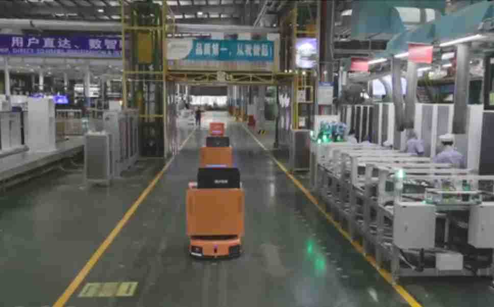 为车载冰箱物流配送打造的智能解决方案,,,包含产中物流通过潜伏举升AMR搬运至线边,,,,产后成品物流智能仓储,,,,流程包含产中物流智能齐套入库,,,,线边安灯叫料AMR智能配送至线边,,,,成品入库、、、出库,,通过无人堆高车机器人,,,,智能仓储管理替代人工作业管理,,实现更高存储、、更高效率、、、、更具柔性化的解决方案。。