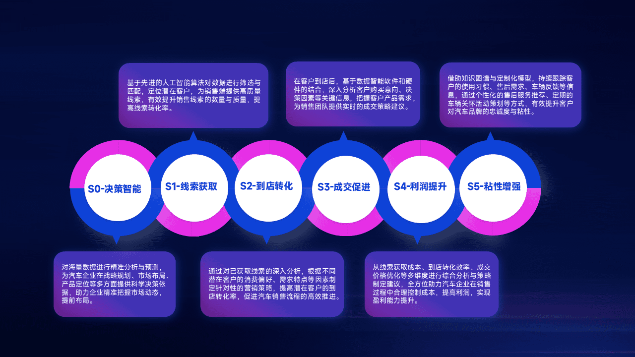 通过拓宽潜在客户来源、、优化线索分配并提高到店转化率,,,以增强销售效率。。。同时,,,,利用线索数据不断优化分析模型,,,,有效提升转化率,,,,扩大营销影响力。。。